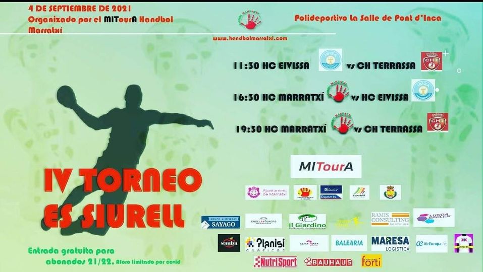 Después del inicio de pretemporada el pasado 9 de agosto, el MiITourA Balonmano Marratxí juega este sábado en el polideportivo La Salle del Pont d'Inca el IV Torneo "Es Siurell" con la presencia del CH. Terrassa del grupo D de primera nacional y el HC. Eïvissa de división de honor plata. El equipo marratxiner está plagado de novedades empezando por su nuevo patrocinador principal: MITourA, y la incorporación del nuevo entrenador Julio Fis, el central argentino Nico Cecchini, Andreu Fernández (jugador catalán fichado de la liga alemana), el madrileño Juanmi Lucio, el joven Iván Monteiro, y el mallorquín Guillem Fernández, que llega de la segunda nacional de la cantera de Mata de Jonc. Además, continúan en el equipo Pablo Olivares, Pedro Samuel, Guille Carranza, Lucas Ferrer y Asier Cadenas, jugadores que la temporada pasada lograron la permanencia de forma brillante. La entrada es gratuita para los abonados y tiene un precio de tres euros para el público general. Habrá aforo limitado por las restricciones sanitarias por Covid. El primer partido comenzará a las 11.30 entre el HC. Ibiza y el CH. Terrassa. Y a las 16:30 de la tarde se disputará el partido entre el MITourA Marratxí y el HC. Ibiza, y a las 19:30 contra el Terrassa del grupo D de primera nacional. El alcalde de Marratxí, Miquel Cabot, entregará los trofeos. Este torneo servirá para ver el nivel competitivo de los marratxiners y será la última oportunidad antes del inicio de la temporada el próximo 26 de septiembre ante la Peña Deportiva en Ibiza.