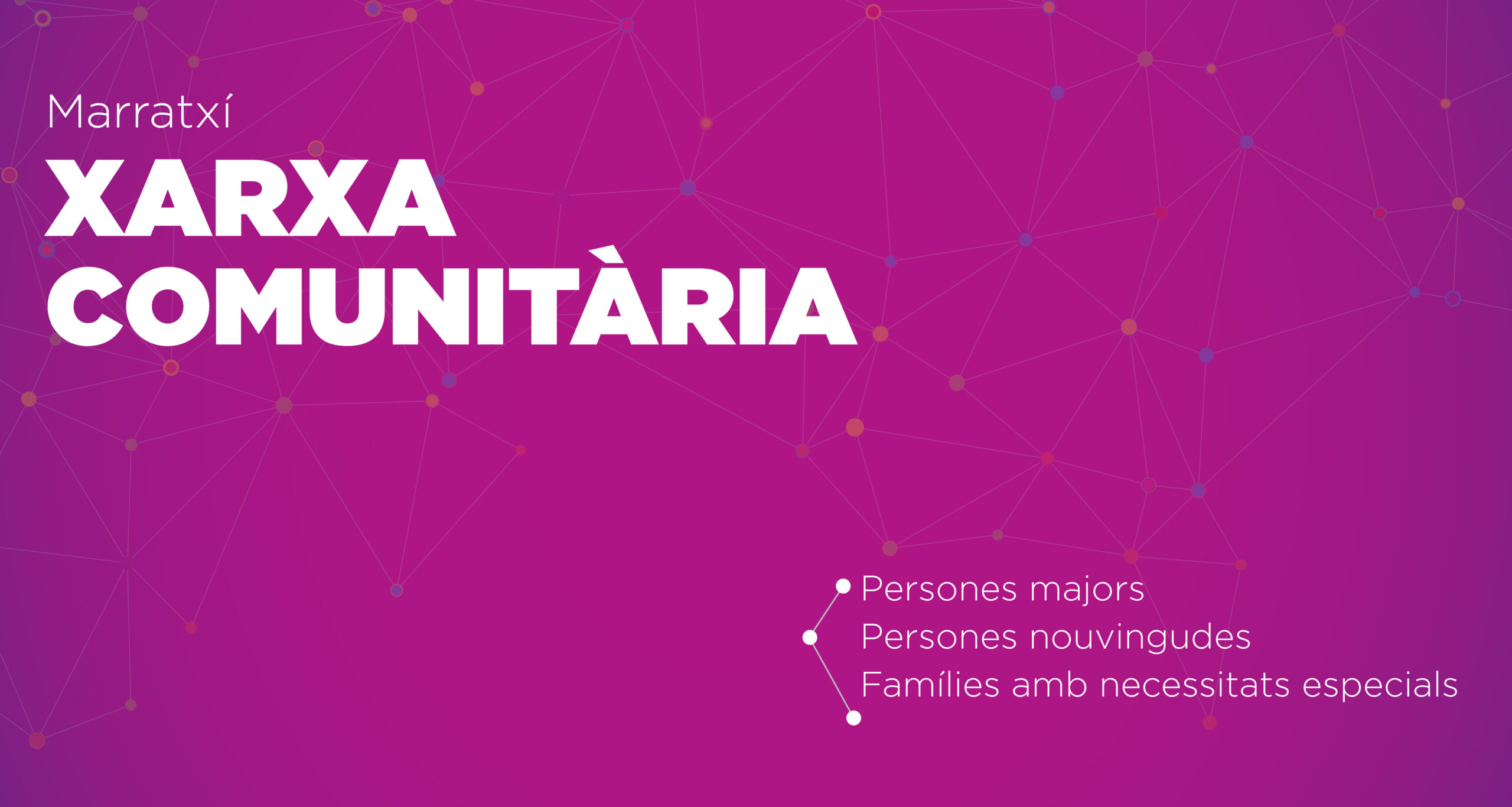 Marratxí Xarxa Comunitària és un projecte de l’àrea de Serveis Socials que va néixer el 2021 per atendre a diversos serveis de població de Marratxí. Es tracta de donar suport a diferents col·lectius, en especial, a famílies o persones que viuen soles, a persones majors en risc d’exclusió social i famílies amb menors o amb dificultats per al manteniment de la seva llar. “La finalitat és que puguin millorar la seva qualitat de vida i de benestar a nivell individual, familiar i social.
